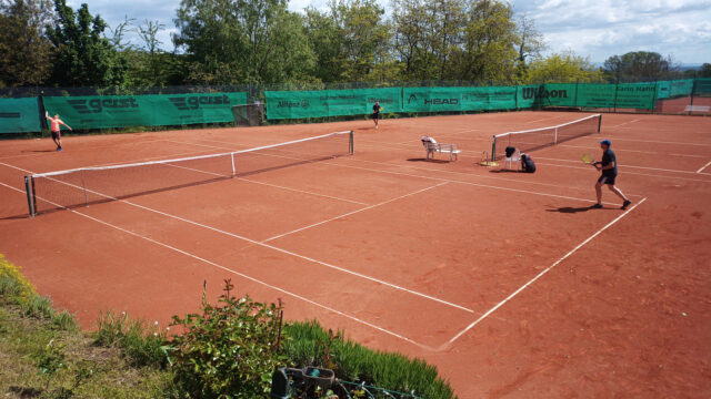 Für das o.g. Tagesturnier hatte ich gemeldet, musste aber zurückziehen, weil es mein Arm nicht zulässt 4 Matches innerhalb von 3 Tagen (Sa. und Mo.) zu absolvieren. Damit ich beim H55 Tagesturnier am Pfingstmontag einigermaßen Leistung bringen kann, habe ich auf das Samstagsturnier verzichtet, bin aber, da ich noch nie auf der Anlage war, am Samstag mal für einen kurzen Besuch hingefahren. Soweit man das in der Kürze der Zeit sagen kann, waren die Matches trotz des böigen Windes auf recht gutem Niveau.